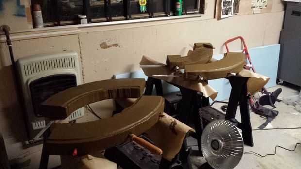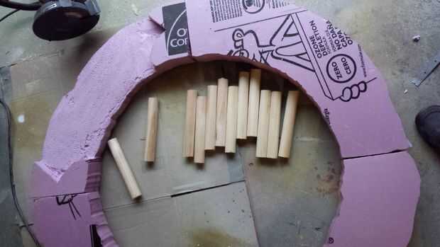 Después de 24 horas de secado, usted puede recortar las secciones de cuarto círculo. Utilizar una herramienta de corte de hilo caliente para la espuma. Se puede comprar en Amazon o hacer uno desde el cable de cualquier secador conectado a un cargador de mantenimiento de la batería del coche (2A).
