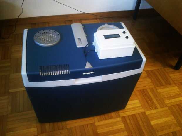 El siguiente paso fue probar la cámara. En la sala apareció un gradiente de temperatura porque ventilador elementos Peltier es débil para mezclar el aire. Vamos a intentar resolver este problema con la adición de otro ventilador. Otra razón que el aire cerca de la pared superior de la cámara es más caliente es que la tapa no es tan buena aislado como otras paredes de la cámara. Después de agregar el ventilador y el otro el perfil de temperatura de medición será subir la actualización.