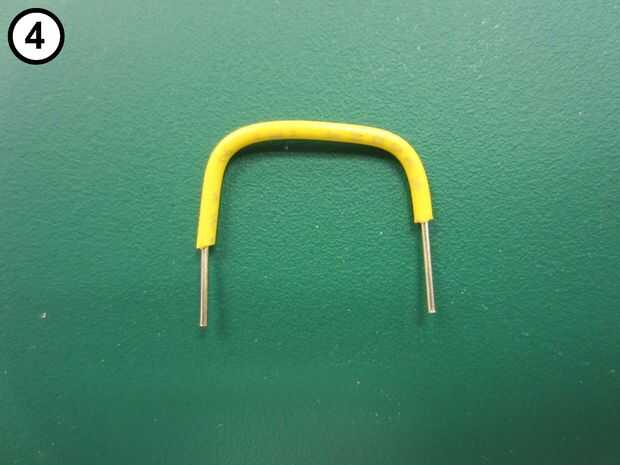 - La soldadura de los extremos macho de dos de los cables de puente macho/hembra de 12" a la placa de circuito como se muestra en la foto 2. Corte los cables en la parte inferior de la placa de circuito. El tablero completamente por cable se muestra en la foto 3.