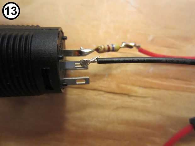 - Colocar y soldar el cable rojo a la resistencia (fotos 11 y 12). Corte el exceso de cable en la resistencia.