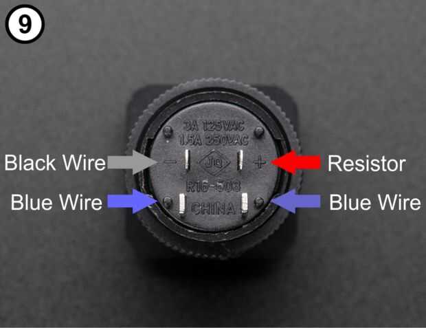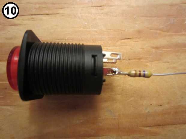 - Con foto 9 como guía a los terminales del interruptor, suelde la resistencia a la terminal positiva (+) (foto 10).