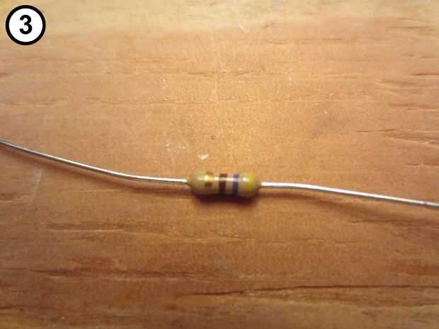 Utilizando los siguientes elementos: interruptor de botón (Foto 1), puente de cables de resistencia de 470 ohm (Foto 2), (Foto 3), y calor (foto 4) de la tubería del encogimiento, preparar el interruptor: