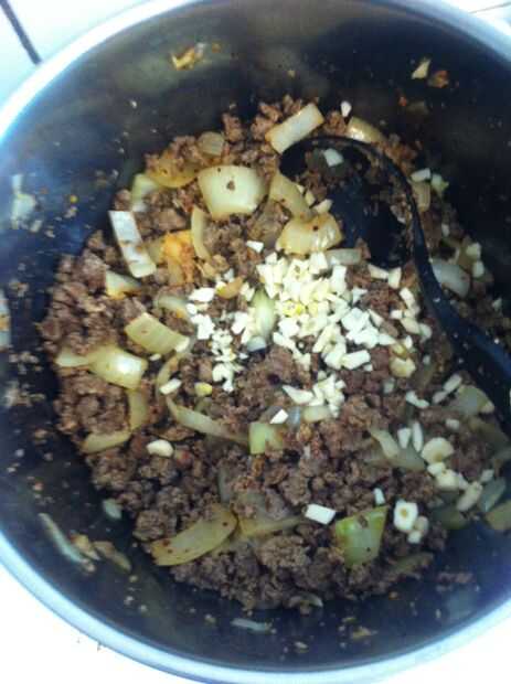 Agregar ajo picado y quorn a la olla y revolver. Déjelo freír un poco.