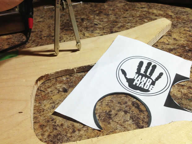 Este #CHAMPCHAIN fue encargado por un cliente que quería su insignia de 'A mano' quemado en una ronda pendiente y cuentas con colores. Debido a la forma exterior de su logotipo era un círculo perfecto, usé un compás de lápiz para dibujar el contorno antes de cortar hacia fuera.