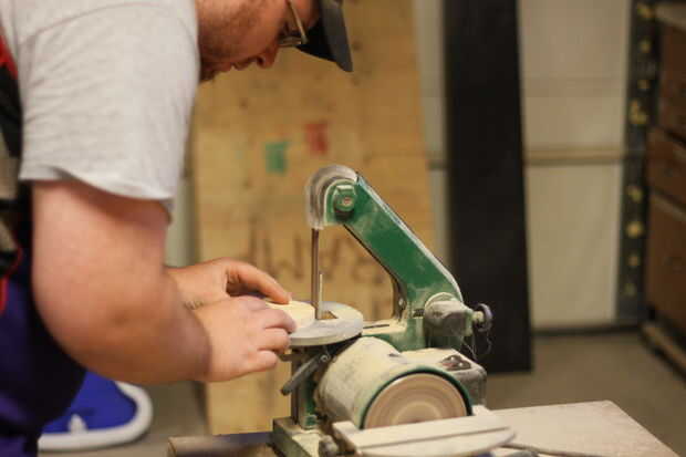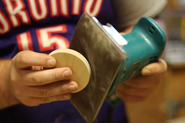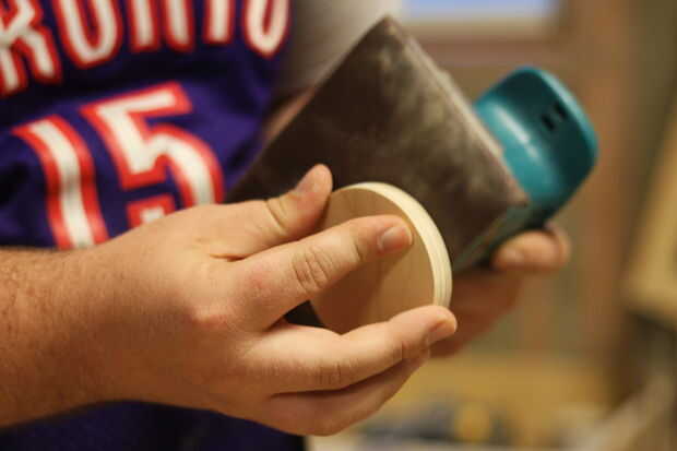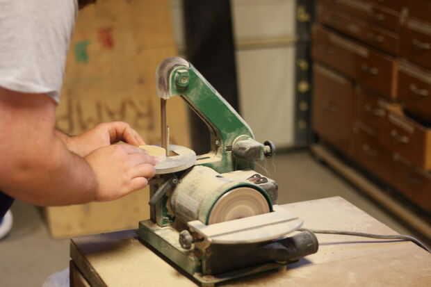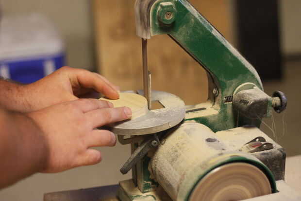 Una vez que tengo la parte exterior de la madera pendiente corte aproximadamente a la forma, bien conecto los bordes tocándolas ligeramente en la lijadora de banda. No sólo la ayuda con la forma final de la pendiente, sino también se deshace de los bordes ásperos, causados por el proceso de corte.