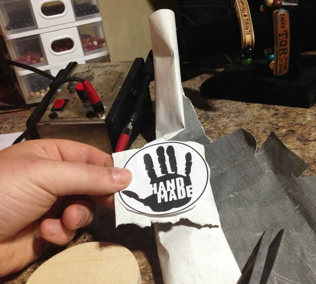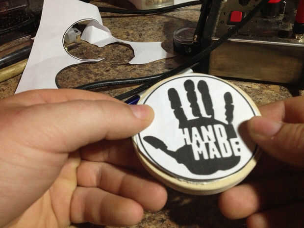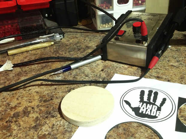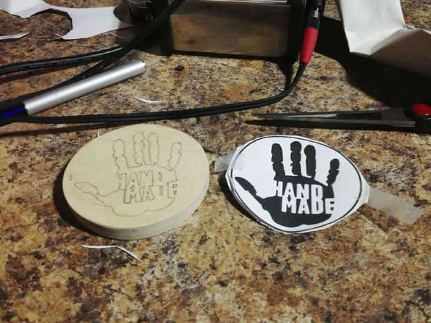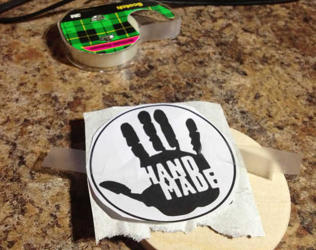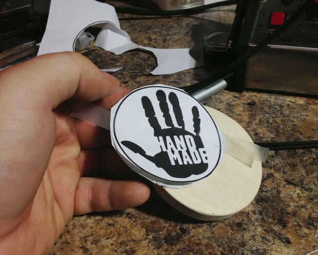 Coloque el logo impreso en el papel de transferencia, asegúrese de tener el gris (o negro dependiendo del papel) lado del papel hacia abajo y su lienzo de madera. Generalmente pongo unos trozos de cinta en la imagen para ayudar a asegurar y el papel de transferencia para la pendiente.