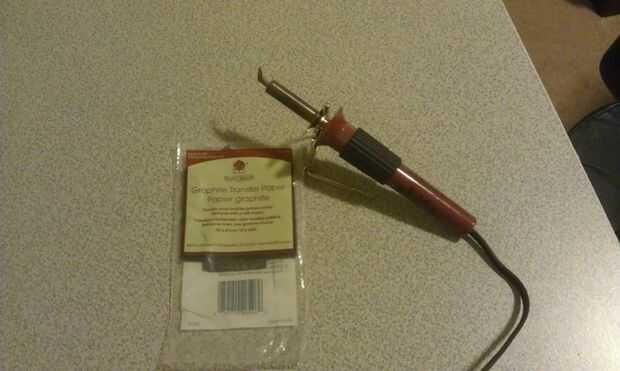 -Madera, cortado a la medida (yo prefiero usar pino. Es lo suficientemente suave como para quemar, pero no demasiado blanda como Basswood) -Papel de lija, grano 320 -Pluma pirograbado -Papel de transferencia grafito -Color -Tijeras -Cinta -Una imagen para quemar madera