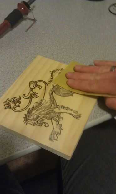 Usted puede notar que hay partes en el trabajo donde coincide exactamente el rastro de grafito (cuadro 2). No te preocupes! Tomar el papel de lija (grano 320 o superior) y Lije ligeramente la pieza completa. Esto se librará de cualquier quemaduras superficiales y las marcas de grafito.