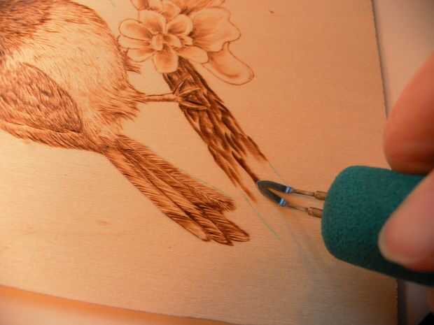 Para quemar la rama, aumente el calor en su sombreado y tirar líneas irregulares a lo largo de la longitud de la rama. Puede inclinar el quemador para lograr el efecto de un borde más duro. Hacer algunas marcas más oscuras que otras para obtener la sensación de la corteza.