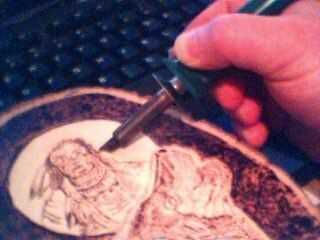 Sujete la plancha firmemente pero cautelosamente, como un lápiz se lleva a cabo. No "estrangular" hierro. Dificultar su quema correctamente, y finalmente "sentirá el calor" de la plancha que viene a través de un mango demasiado firmemente sostenido :-) La imagen da una aproximación cercana de cómo tengo el hierro "la mayoría del tiempo". Habrá momentos habrá modificar la empuñadura para conseguir el efecto que desea.
