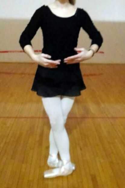 Los brazos deben realizarse en la primera posición. Mantener los brazos rígidos y curvos. Actúan como fuente de equilibrio mediante el giro de la pirueta. Primera posición de brazos se pueden ve en la foto, curva delante del cuerpo y celebró el nivel con el centro de la caja torácica.