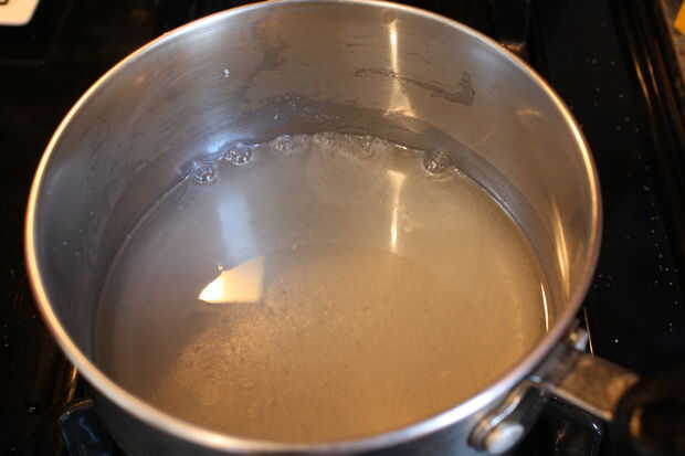 Mientras el azúcar hierve laico hacia fuera su lollipop palos sobre una silicona para hornear mat (puse mi estera para hornear en una bandeja para hacer más fácil moverse y un bonito plano duro).