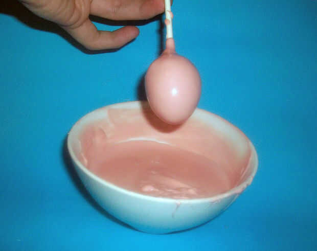 Mergulhe seus pirulitos de bolo com palito na cobertura de doce e dar-os para garantir uma cobertura completa.
