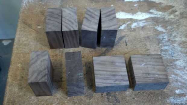 Como se puede ver, corté la pieza por la mitad para asegurarse de que tengo el grano que le mostrara el mejor. Si había cortar 8 piezas en el grano en segmentos de 1,5" la veta habría sido en la parte delantera de cada pieza y no habría sido muy visualmente atractiva.