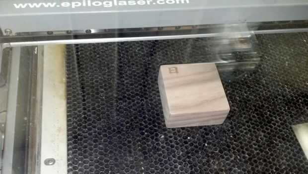 Comparando los dos bloques, había gustado los recortes más profundos de mi segunda pasada aunque causó ardor un poco más. Le pregunté a otro miembro de TechShop que estaba trabajando en los láseres y recomienda un papel de lija muy fino (grano 300) y Lije ligeramente sobre el diseño a mano. Esto limpió bien y había preparado para la fase final.