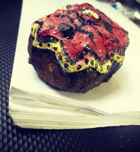 esta piedra que he recogido en la playa de GOA. Estaba en mi escritorio por unos 5 meses. Hoy dibujé algo con pencol en él. Miró y miró. Pronto trajo hacia fuera mi acrílico pinturas y dibujó sobre la piedra. Ahora estoy pensando en regalar como rega