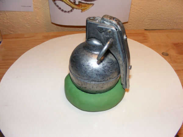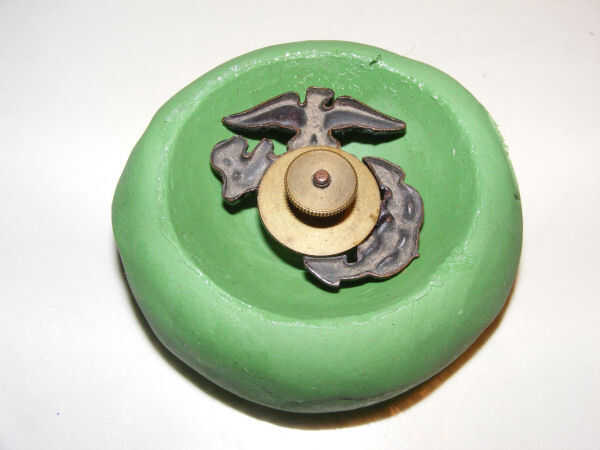 Centro el emblema en la impresión en su arcilla y presiona suavemente pero con firmeza. Trate de mantener tan siquiera una presión como sea posible.
