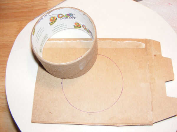 Utilizando un pedazo de cartón (en este caso un cuadro de Dr. Pepper) y un lápiz, traza la forma de la cinta pato enrollar sobre el cartón.