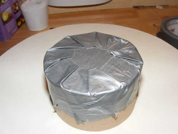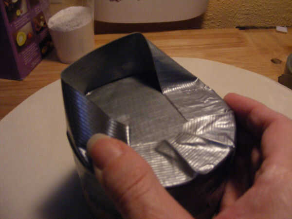 Recortar la forma con tijeras y cinta adhesiva para el rollo de cinta pato, crear un contenedor.