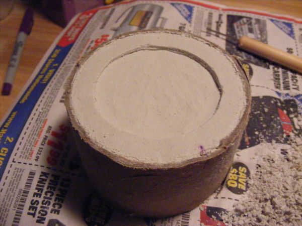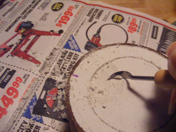 Con la hoja curva, o la herramienta cerámica, sacar el centro del círculo a una profundidad de aproximadamente 1/16 de pulgada.