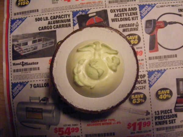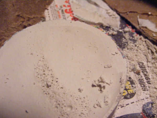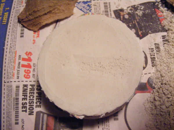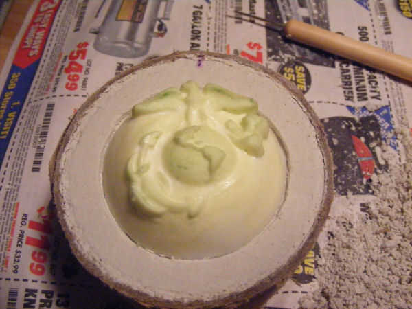 Centro el emblema de molde hecho en yeso que debe quedar al ras con el cartón rollo. (Que es por ahora boca abajo).