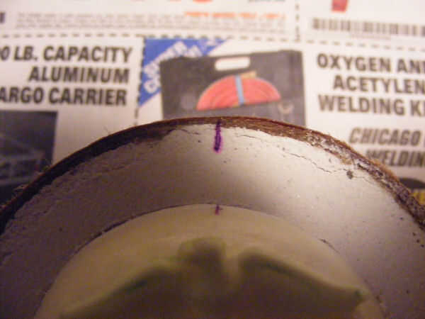 Marcar una línea alrededor del emblema con instrumentos afilados y puntiagudos, palillo de dientes, herramienta de arcilla, aguja ect...