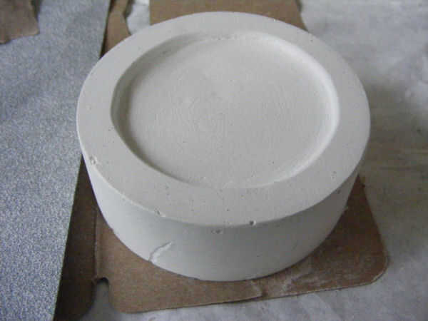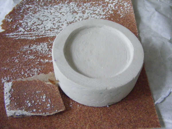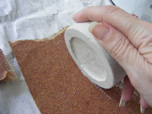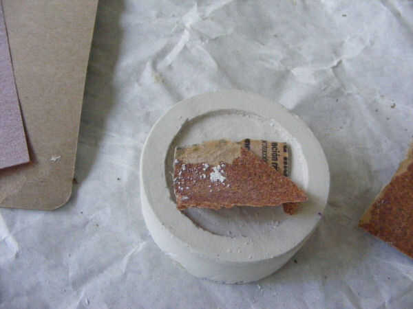 He utilizado tres diferentes granos, (60, 120 y 220). No debe tomar demasiado lijado, pues el yeso es suave tranquila. He dejado los pequeños pliegues que había creado el rollo en el yeso para el personaje, ya que voy para una mirada de piedra.