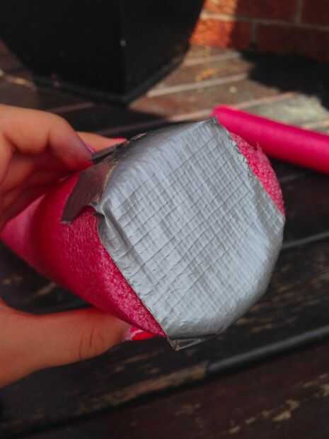 Paso 3: Cinta entrecruzada sobre uno de los extremos de los tallarines de la piscina utilizando cinta adhesiva.