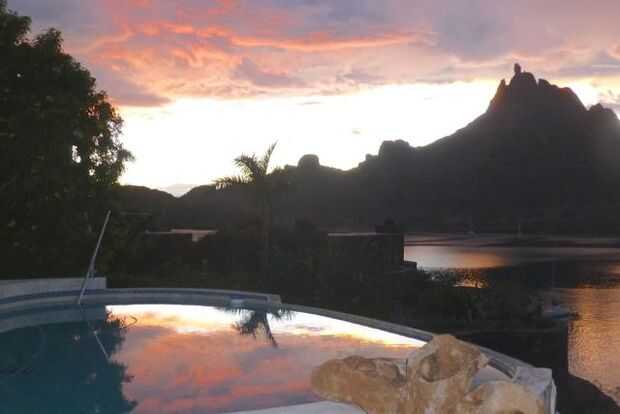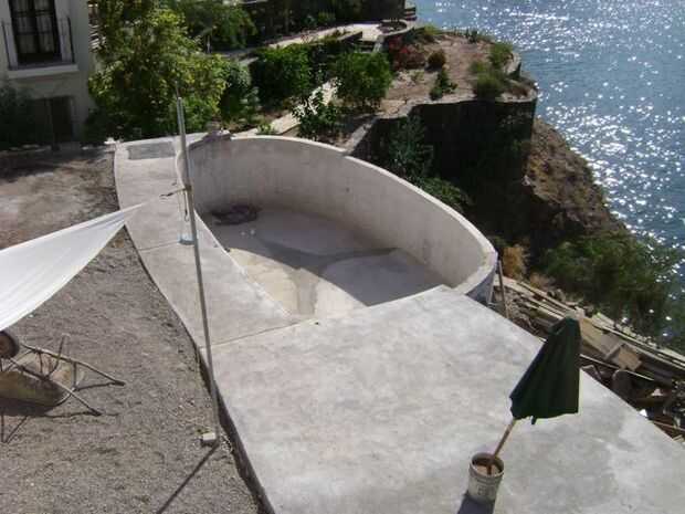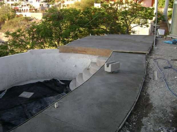 Desde nuestra piscina libre, agregamos una cubierta en dos lados, todo hormigón convencional que superpuesto al borde de la piscina, nos deja con un agradable lugar para disfrutar de los atardeceres de San Carlos, Sonora, México.