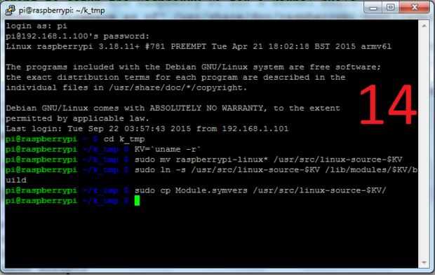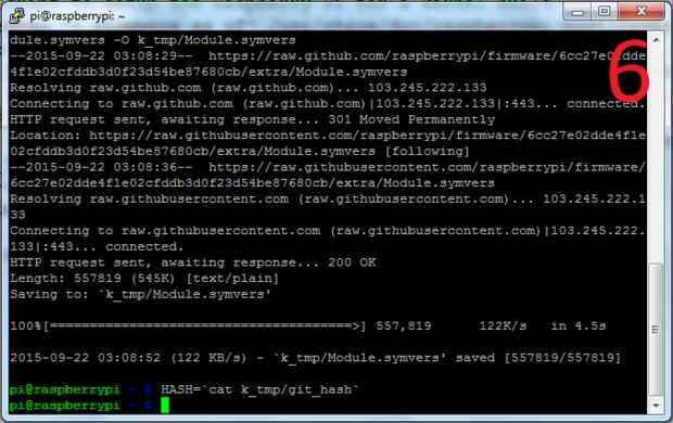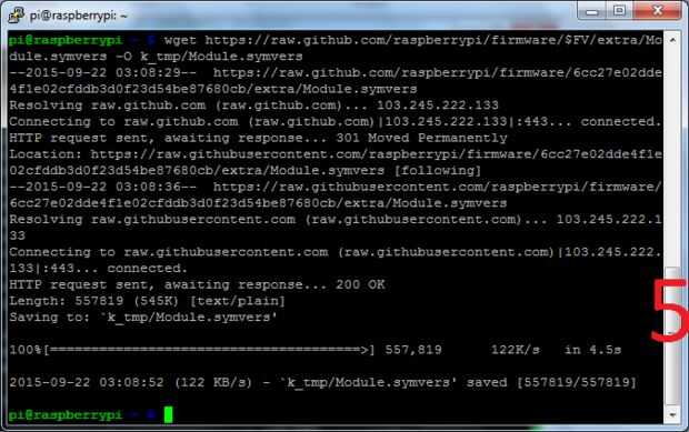 El directorio debe tener una copia de la información de versión de módulo correspondiente antes de edificio. Módulo información de versión se almacena en un archivo llamado /usr/src/linux/Module.symvers. Este archivo se crea durante la compilación del núcleo, un proceso que tardaría 10 horas en la Raspberry Pi. Afortunadamente, Module.symvers puede también ser descargado github.com. Descargar archivo Module.symvers