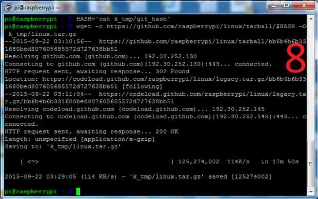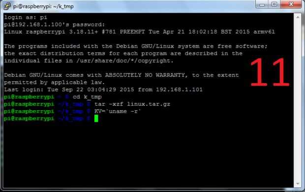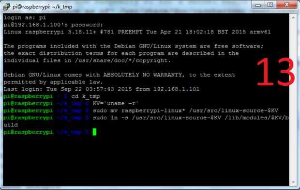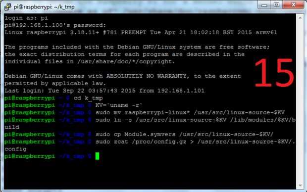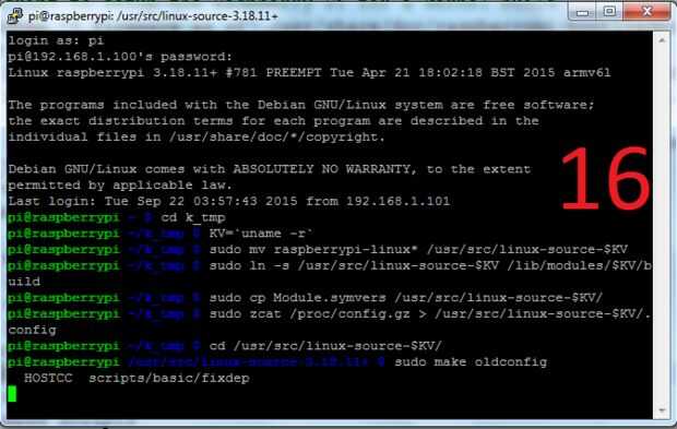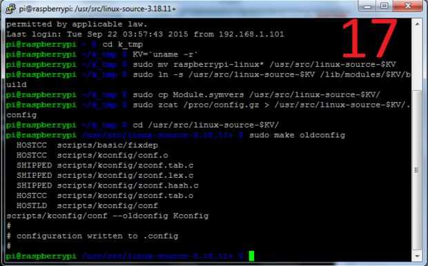 Si todo lo hace correctamente el Raspberry Pi está ahora preparado para compilar el módulo del kernel.