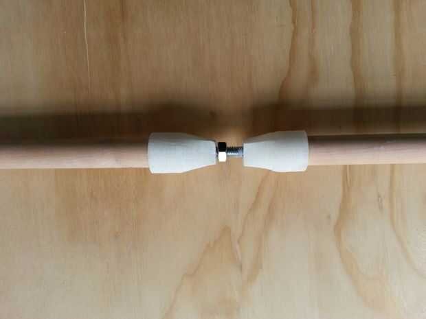Tornillo en la tuerca y el carro en el segundo palo de escoba por lo que parece la segunda foto. Coloque también los pies si no lo has hecho ya.