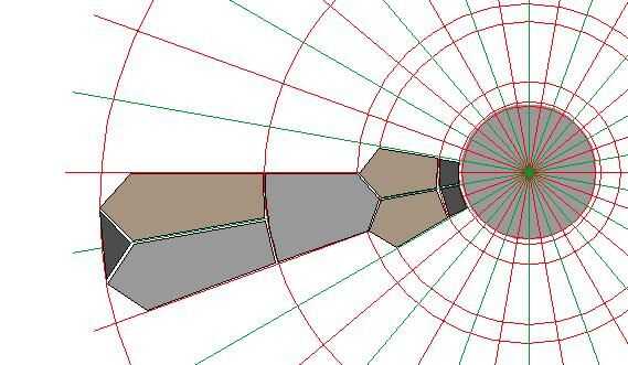 Hasta el momento no ha habido ninguna razón para la ronda final de las piezas de azulejo. Esto es porque para los segmentos que encajan en las áreas de grado 10, los extremos son una buena aproximación del arco del círculo en el cual encajan. Los pedazos del tercer círculo están en un segmento de arco de 20 grados, y la interfaz entre el segundo y tercer círculo requiere redondeo