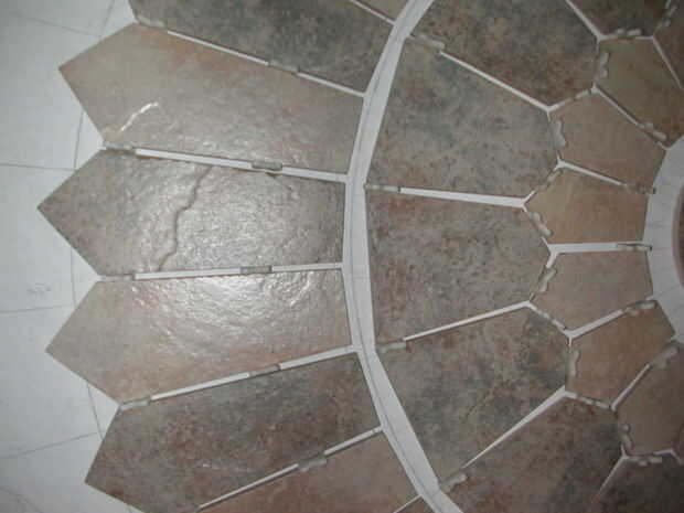 Se corta el pedazo de centro con recto varios cortes hasta casi redondo. Acabado con cuidado el borde de la húmeda vio una amoladora