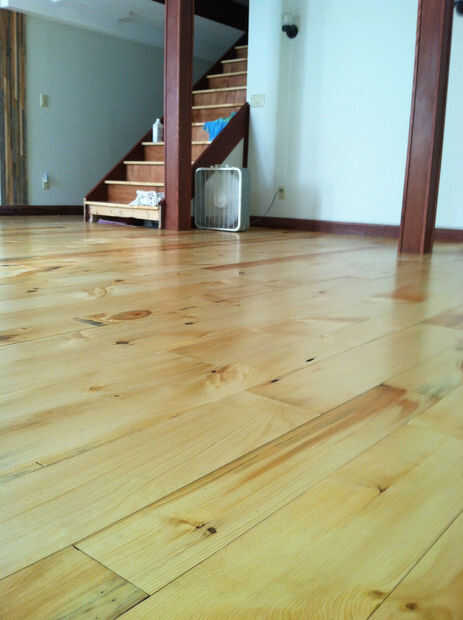 Después de un largo viaje el piso estaba completo. Todavía le falta un borde para llenar el hueco entre las tablas y las paredes. Subiré fotos cuando este paso se haga.