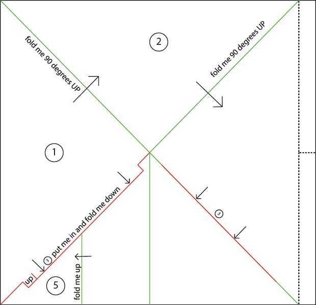 * A continuación en línea es plegable pieza 5 que esta es la pieza que pones en el suelo. Esta pieza que necesita doblar en un ángulo de 90 grados.