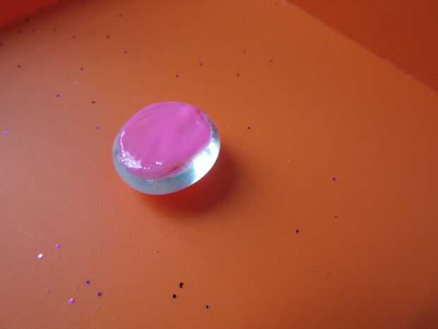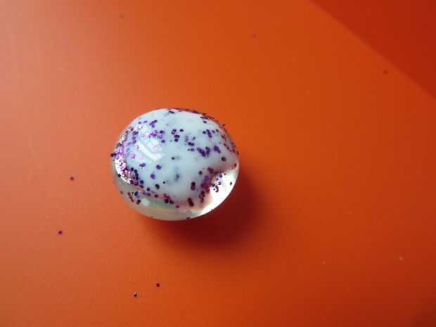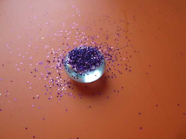 Espolvorear la parte superior con purpurina y dejar para secar. Una vez se seca, cubierta con una fina capa de pegamento blanco para sellar el brillo.