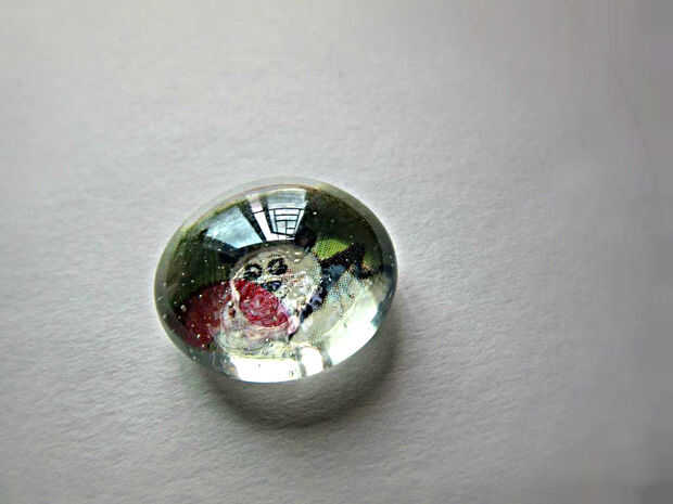 Elegir una pequeña ilustración y colocar el mármol sobre la ilustración. Dibujar en el mármol y recortar la ilustración. Recortar la ilustración hasta que cabe perfectamente en la parte posterior del mármol. Quitar suavemente cubrir la espalda del mármol con cualquier cola blanca o barniz de uñas y pegar la ilustración en.