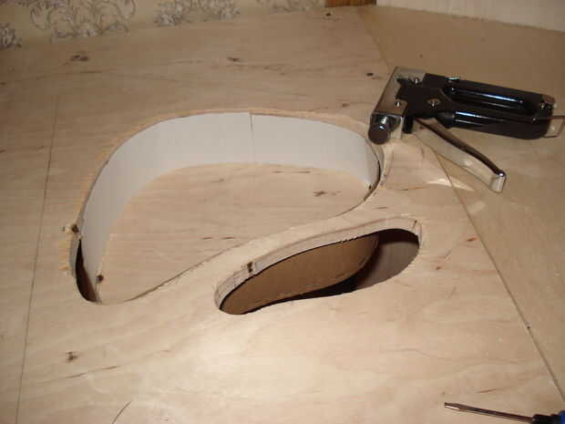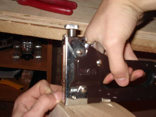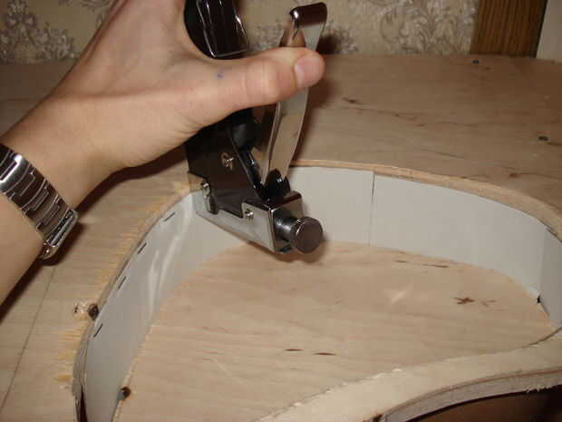 ---Se utiliza la grapadora para grapa las tiras alrededor del borde de la