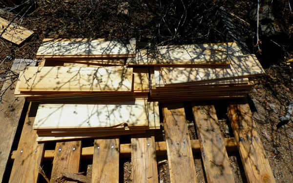 La pila de desecho de madera siempre es un buen punto de partida para un proyecto como este.  Me ha pasado a tener un montón de tableros cortos que nuestro vecino raro me dio.