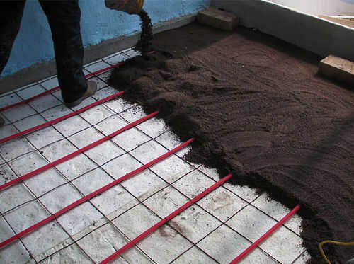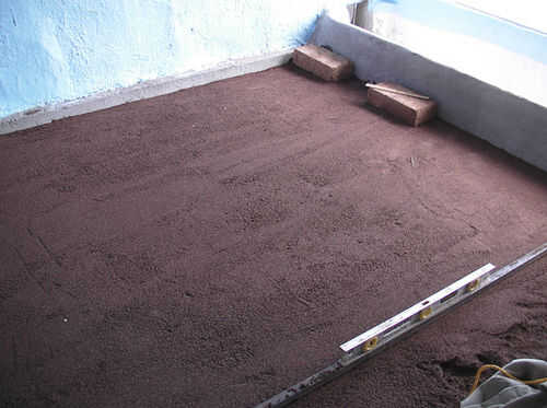 Preparar y nivelar el suelo, añadiendo si se desean cualquier barrera de vapor, sistema de calefacción y aislamiento. Poner una capa de 1 pulgada de arena y malla fina sobre toda la zona. Compactar y nivelar la arena. La forma más sencilla de hacer esto es enterrar y nivel un pedazo de tubo cuadrado en la arena a ambos lados de la sala, para que la parte superior del metal quede a ras con el nivel deseado de la arena al ser.
