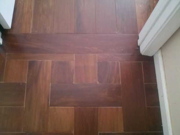 Kuhlmom y yo decidimos probar un patrón diferente para la instalación del pasillo upstair. El poste de newel y transición de las escaleras al pasillo de las habitaciones presentaron algunos desafíos serios y creativos, "especialidad" cortes para que sea visualmente atractiva y simétrica. El problema, otra vez, es que esta casa no tiene una pared recta en cualquier parte en ella! La mayor parte del tiempo que pasamos fue verificar el patrón era cuadrado cualquiera que sea la referencia "visual". En pocas palabras... que mira a la derecha.