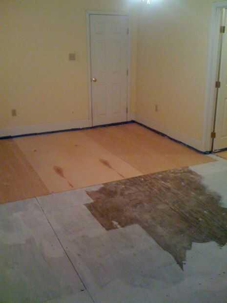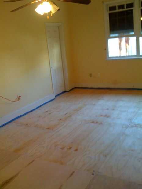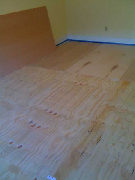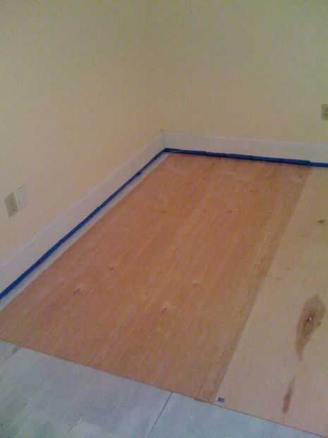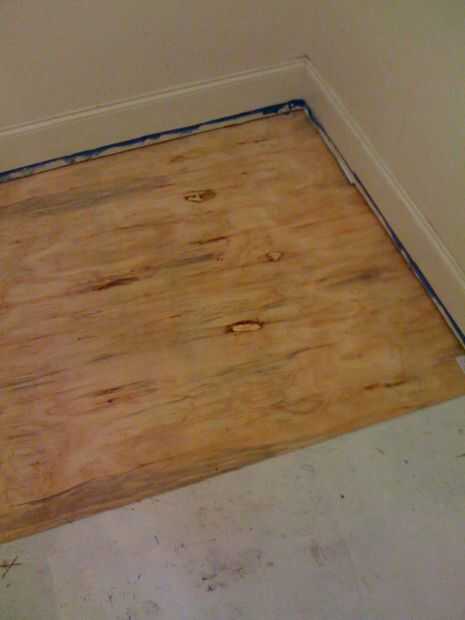 Una vez que ha hecho los cortes establecen la madera contrachapada hojas la forma en que desee como una prueba. Si todo parece correcto está listo para unir la madera al subsuelo.
