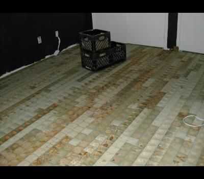 mi cocina tenía azulejos desagradable terrible. Mi esposa arrancada el azulejo y el azulejo se acercó algunas del piso de madera. No fue su culpa. Más propietarios que están intentando algo nuevo por primera vez cortando las esquinas en cualquier lug