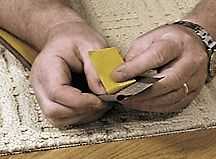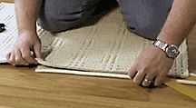 Coloque cada pieza de alfombra sobre una superficie plana y empezar a aplicar la cinta auta-adhesivo de Instabind™.binding alrededor de los bordes. Despegue de parte del papel protector de la cinta de Unión y comenzar a aplicarlo a la parte posterior del corredor o zona de alfombra, comenzando en medio de un borde.