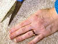 Cortar las piezas de moqueta que necesita basado en sus medidas y recortar los hilos sueltos y los bordes para que estén limpios y aseados.