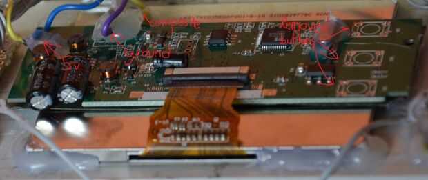 En primer lugar es necesario desarmar la pantalla. Para ello necesitará Desatornillar los 4 tornillos de cabeza Phillips, sosteniéndolo en. Uno puede estar oculto bajo una etiqueta de garantía. Después se saca la parte de atrás veremos un circuito conectado a un lcd con un cable de cinta muy frágil, DON "T rompa lo! o si necesita una nueva pantalla. Para solucionar el problema falta salir un multímetro. La sonda alrededor de algunos de los cojines que pueden soldarse a hasta encontrar uno que tiene 5 voltios. Soldar dos cables hay y poner un poco de pegamento caliente para aliviar la tensión de la conexión soldada.