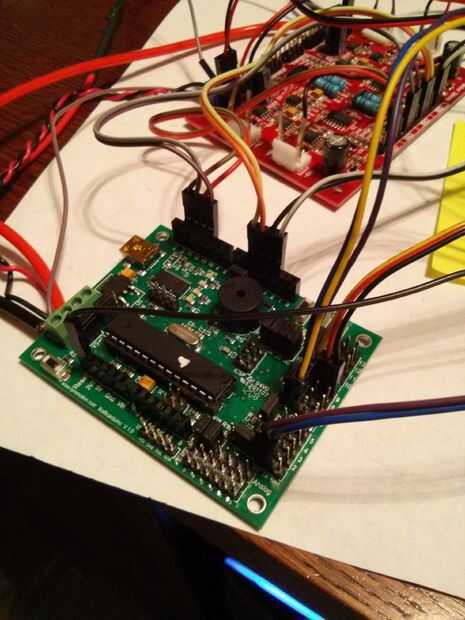 Este fue el primer proyecto que he utilizado Arduino asi he don un poco de investigación. Decidí usar el Arduino Botboarduino de Lynxmotion para el procesador porque se ha utilizado en un vehículo de la impulsión de 4 ruedas antes. Entonces tuve que buscar un regulador del motor de 4 canales, que no encuentro demasiados para elegir. Podría tener uso 2 de los controladores de 2 canal pero he querido todo en una tabla. Así que fui con el regulador del motor de canal 4 de Dagu de Robotshop. Ejecutar sólo los motores de 4 y el receptor remoto utiliza todos mis canales servo en el Botboarduino así que tuve que conseguir un chip controlador de micro servo serie podría tener más canales para mi servos que controlarán mi cámara frontal y posiblemente un brazo de agarre.