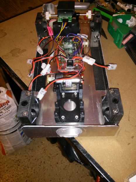 Aquí tengo la mayoría de los componentes en la estructura para asegurarse de que todo encaja. Aviso el 4.8v batería que hice en la primera foto. También puedes ver todos los conectores rápidos que he agregado para el cableado.