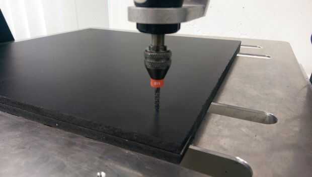 Ahora queremos configurar la máquina. Primero de adelante y montar el material de la cama de fresado en la cama de la máquina, asegúrese de que se presiona firmemente hacia abajo y cuadrado con la máquina.